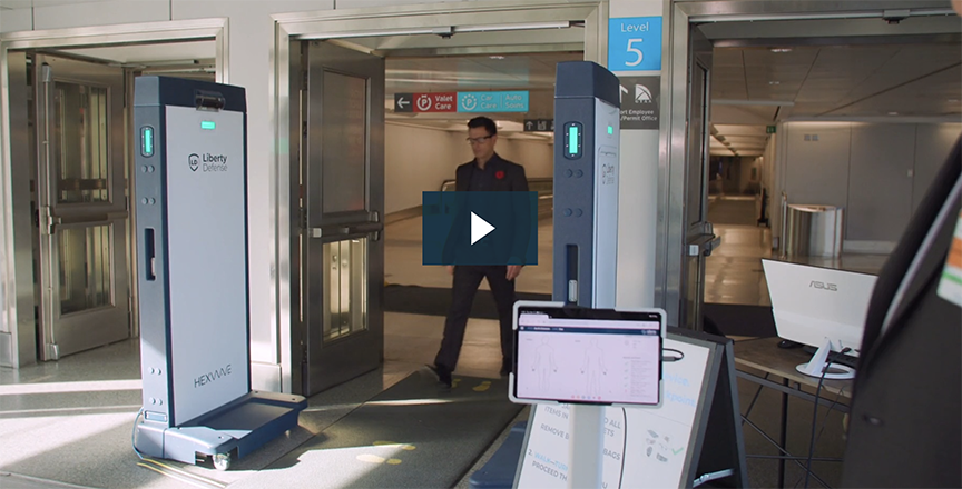 Watch an overview video about Liberty Defense’s HEXWAVE system. HEXWAVE uses millimeter wave, advanced 3D imaging, and AI to detect all types of concealed metallic and non-metallic weapons and other prohibited items. The system allows for rapid, automated screening using a high throughput, contactless, walkthrough portal.